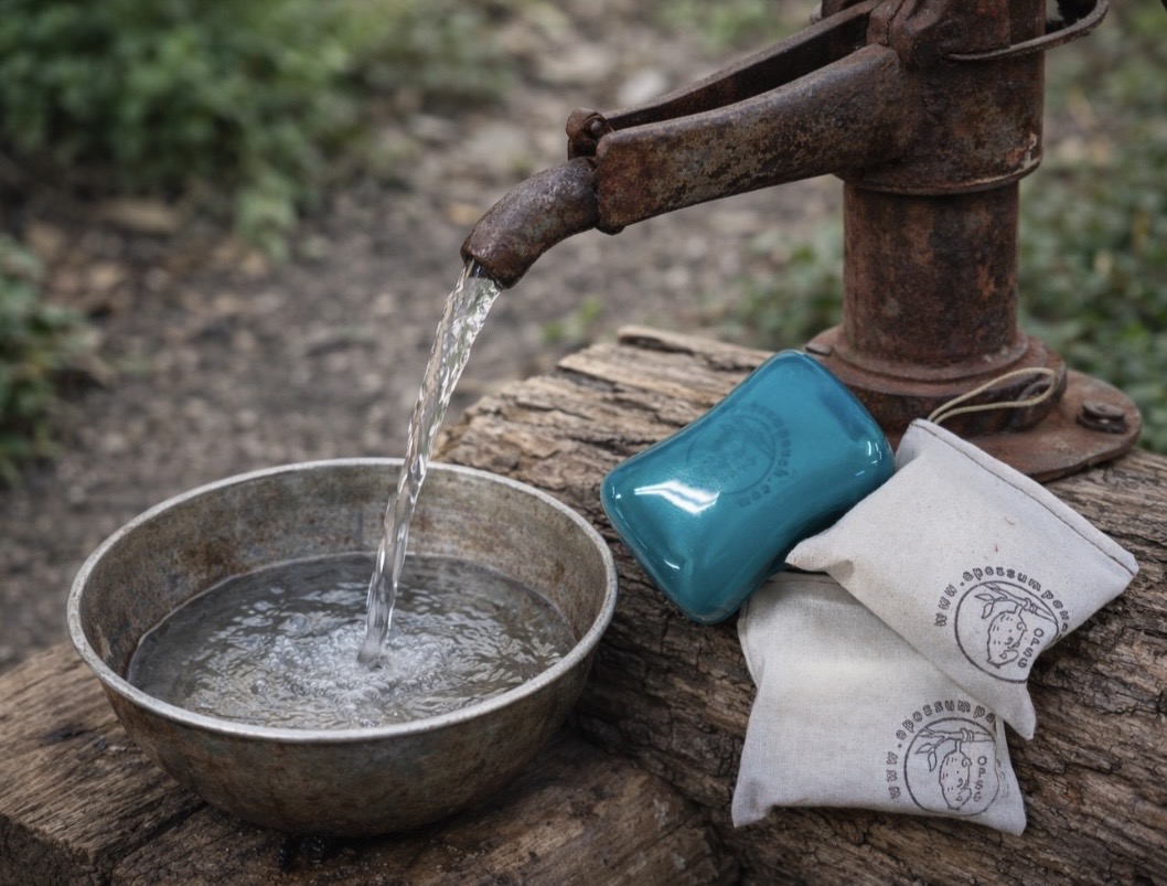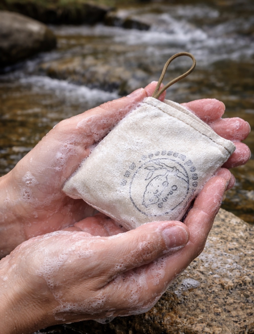 So, just because you are camping does not mean hygiene is irrelevant. It is still very important, especially in the event of first aid, handling food or any other number of reasons. Fact is, we still need soap and water on the trail. However, we all know that carrying and making easy use of soap and a washcloth while camping can be less than ideal. It’s hard to get dirty hands, face and other areas clean in trail conditions without a washcloth and keeping debris off a damp bar of soap is not easy either. Soapboxes are ok for the soap but the washcloth is always kind of an annoyance. Hang it on a limb, right, just know you will always find it on the ground later.